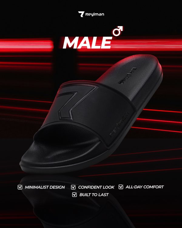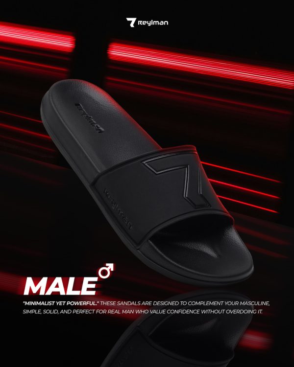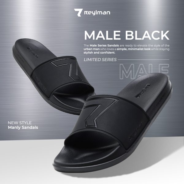 | Sandal Male Series ini di konsep minimalis, dengan warna hitam doff yang memberikan kesan manly dan special signature icon dari Reyl Man.
