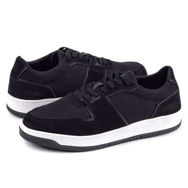 Dengan tampilan clean dan tegas, MODEST series ini memadukan bahan canvas dengan aksen suede lembut untuk menciptakan kesan santai tapi tetap rapi. Warna hitam solid yang dipadukan dengan outsole putih memberikan kontras modern yang khas mewakili gaya pria urban yang simple, aktif, dan percaya diri. Desain low-cut-nya memberi siluet proporsional yang cocok untuk berbagai gaya, dari street look hingga smart casual.